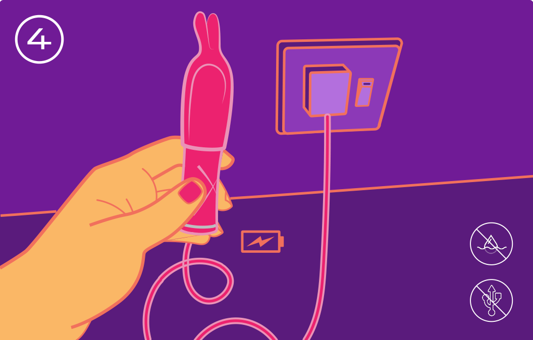 1.Hold the X button for 3 seconds (white LED light will flash) to start the vibrations. As you get going, start exploring the 7 speeds or intensities by pressing the X button. Lubricate the Vibrator with any Durex water-based lube, when you insert it into the vagina. Make sure you don't insert the Vibrator into the vagina when the Teaser Tip is attached. Switch it on, switch it up!